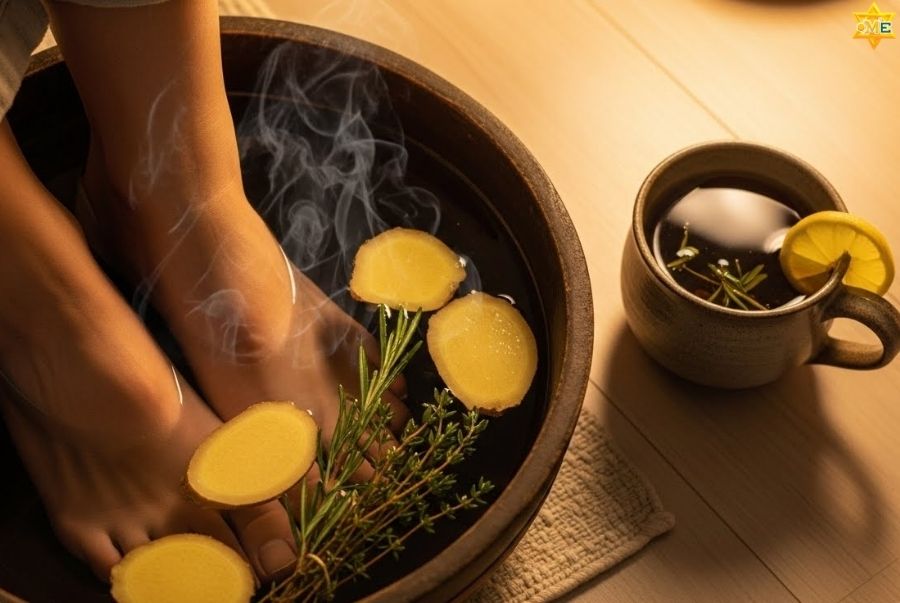 Ngâm chân nước ấm: Trước khi bấm huyệt, hãy ngâm chân với nước ấm pha muối gừng hoặc thảo dược. Nhiệt độ giúp giãn nở mạch máu, tăng hiệu quả của liệu pháp bấm huyệt.